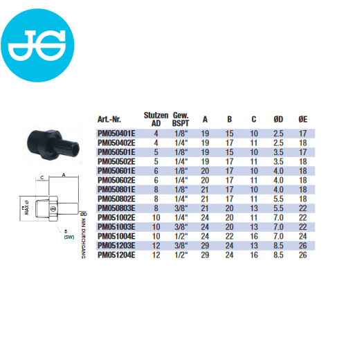 John Guest Einschraubstutzen mit BSPT-Gewinde