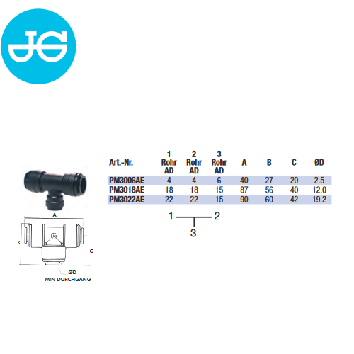 John Guest T-Verbinder PM0222E - Ø 22,00...